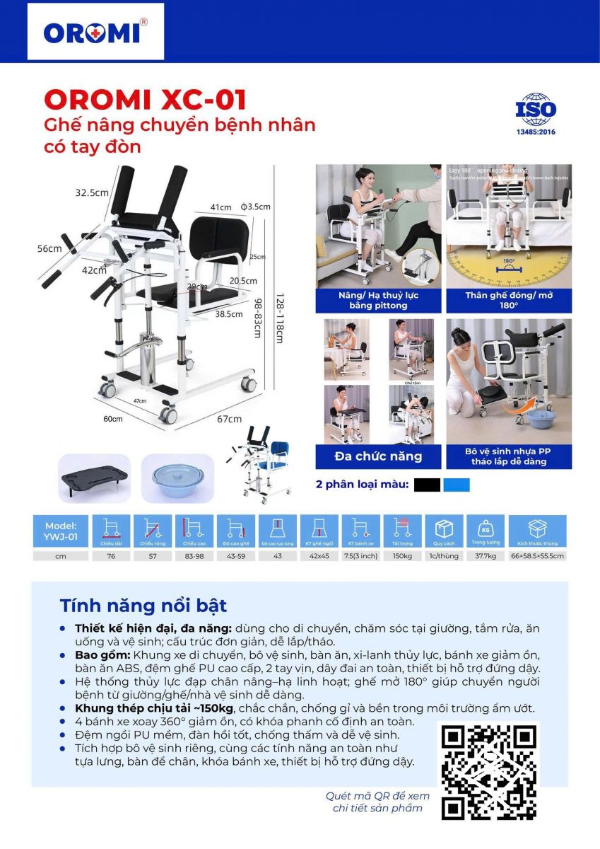 - Đa dạng công năng sử dụng: Phù hợp cho chăm sóc tại giường bệnh, di chuyển, tắm rửa, ăn uống, hoặc vệ sinh cá nhân.
