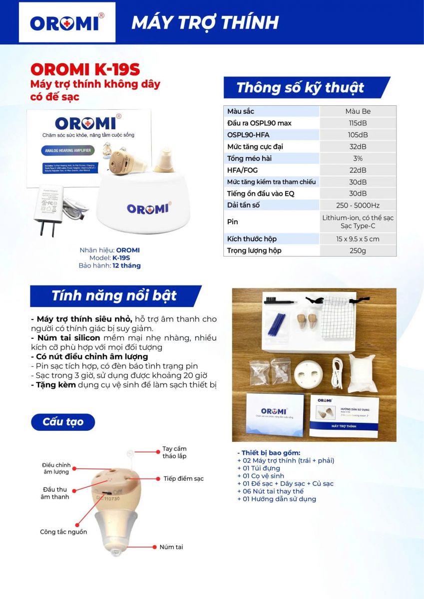 Máy trợ thính không dây có đế sạc Oromi K19S là giải pháp đáng tin cậy cho người suy giảm thính lực, đặc biệt là người cao tuổi. Với thiết kế nhỏ gọn, âm thanh rõ ràng, đế sạc tiện lợi và dễ sử dụng, sản phẩm mang đến trải nghiệm nghe thoải mái, an toàn và hiệu quả lâu dài cho cả người dùng lẫn người chăm sóc.